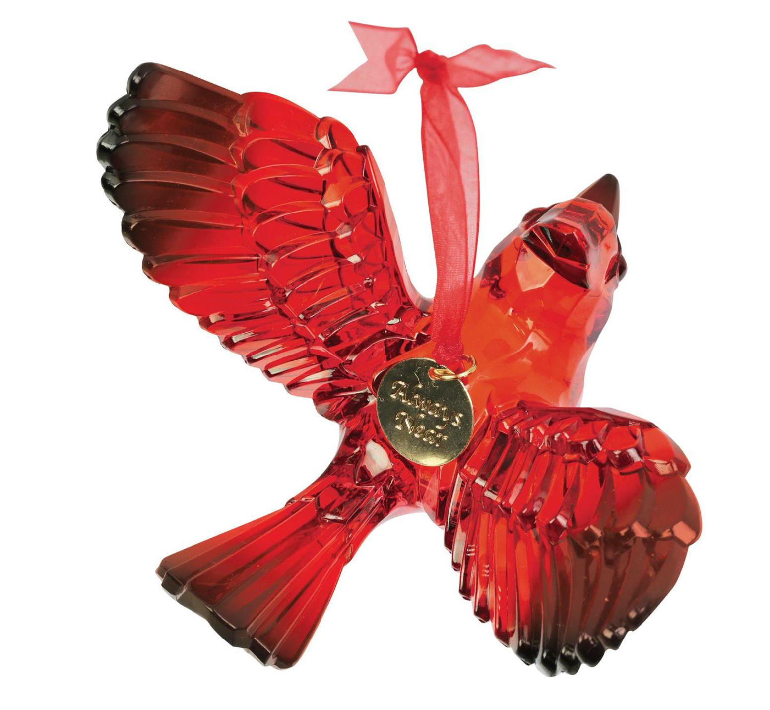 Always near. Tradition claims sighting a cardinal is a sign that a loved one is nearby. Let this lovely acrylic red bird assure you of the presence of that special someone. Measures 5" x 5" x 3.25". Includes gold charm "Always Near" and sentiment card: